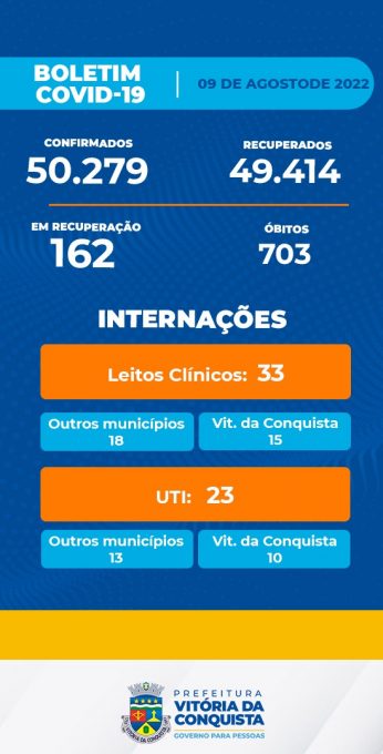 Vitória da Conquista confirmou mais 65 novos casos de Covid-19 nesta terça-feira (9), de acordo com o Boletim Epidemiológico da Secretaria Municipal de Saúde (SMS). Nenhum óbito foi registrado.
