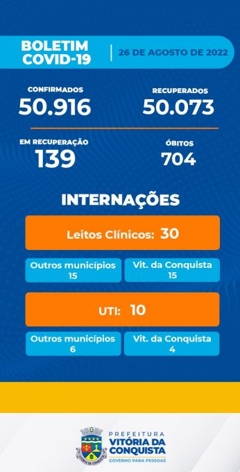 Nesta sexta-feira (26), Vitória da Conquista registrou 80 novos casos de Covid-19, segundo informações do Boletim Epidemiológico da Secretaria Municipal de Saúde (SMS).
