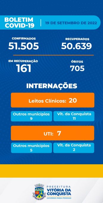 Nas últimas 72 horas, a Secretaria Municipal de Saúde (SMS) registrou 40 novos casos de Covid-19 em Vitória da Conquista. De acordo com o boletim epidemiológico divulgado nesta segunda-feira (19), são 51.505 históricos da doença desde o início da pandemia.