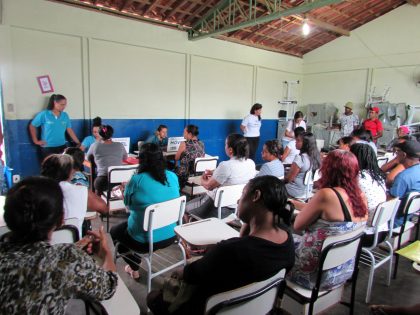 Enquanto aguardavam o seu atendimento, os beneficiários eram atendidos por técnicos da Secretaria de Saúde e também assistiram palestra com a psicóloga do CREAS sobre violência contra mulher