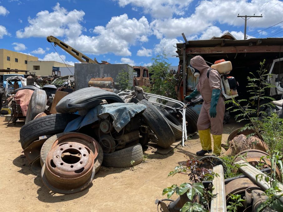 A cada 15 dias, os agentes de endemias visitam esses locais estratégicos onde o cuidado precisa ser ainda mais minucioso na eliminação de focos do mosquito, como borracharias, oficinas, ferros velhos, cemitérios, garajões, hospitais, área externa da Ciretran e do Complexo Policial, dentre outros.