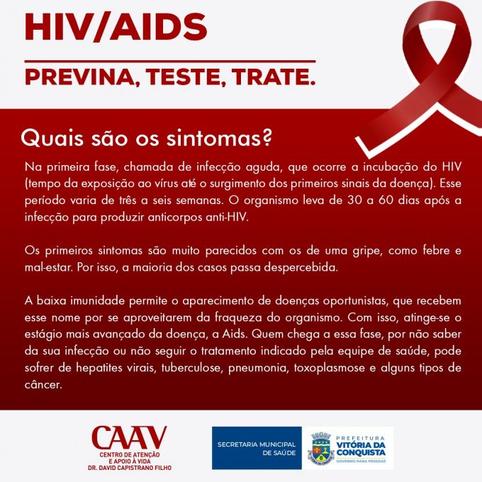 “O objetivo maior dessa campanha é ampliar esse acesso ao teste rápido para que as pessoas possam se testar e conhecer o seu estado sorológico, para que inicie o tratamento imediatamente dentro do próprio serviço. Ainda não está disponível tratamento que possibilite a cura da doença, mas uma pessoa com diagnóstico positivo de HIV, que faz todo o tratamento, pode viver anos sem sintoma ou sem desenvolver a Aids”, ressaltou a coordenadora do Caav, Riviane Santana.