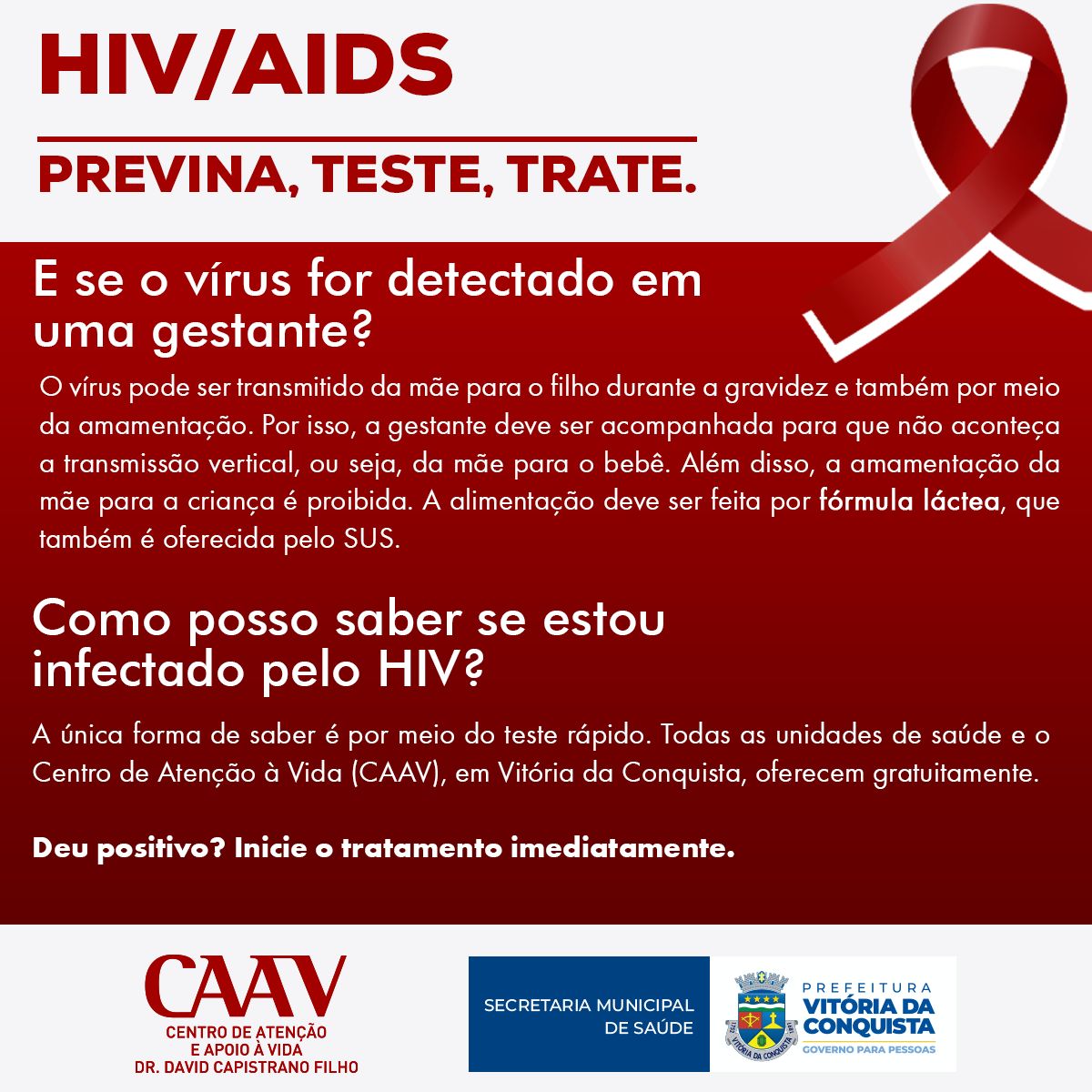 “O objetivo maior dessa campanha é ampliar esse acesso ao teste rápido para que as pessoas possam se testar e conhecer o seu estado sorológico, para que inicie o tratamento imediatamente dentro do próprio serviço. Ainda não está disponível tratamento que possibilite a cura da doença, mas uma pessoa com diagnóstico positivo de HIV, que faz todo o tratamento, pode viver anos sem sintoma ou sem desenvolver a Aids”, ressaltou a coordenadora do Caav, Riviane Santana.