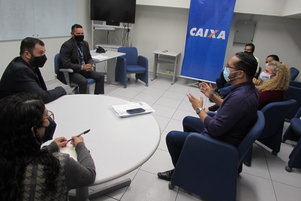 Marcelo aproveitou a oportunidade para apresentar a estrutura organizacional da Caixa e pontuou algumas solicitações da coordenação de Renda e Cidadania e Gestão do Programa Bolsa Família. “Estamos muito felizes com esta reunião. Estamos aqui à disposição para atender bem, principalmente o beneficiário, pois a gente sabe que são eles que mais precisam de nosso bom atendimento”, ressaltou Marcelo.