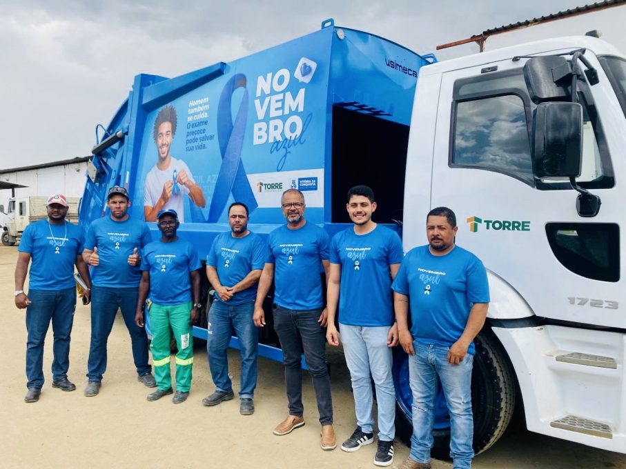 Na manhã desta quinta-feira, a Secretaria Municipal de Serviços Públicos (Sesep) realizou, em parceria com a Empresa Torre, uma ação alusiva ao Novembro Azul, mês de conscientização e prevenção do câncer de próstata. Durante o momento, foi apresentada a plotagem de um caminhão de coleta de lixo com a temática da campanha, reforçando a importância do cuidado com a saúde masculina.