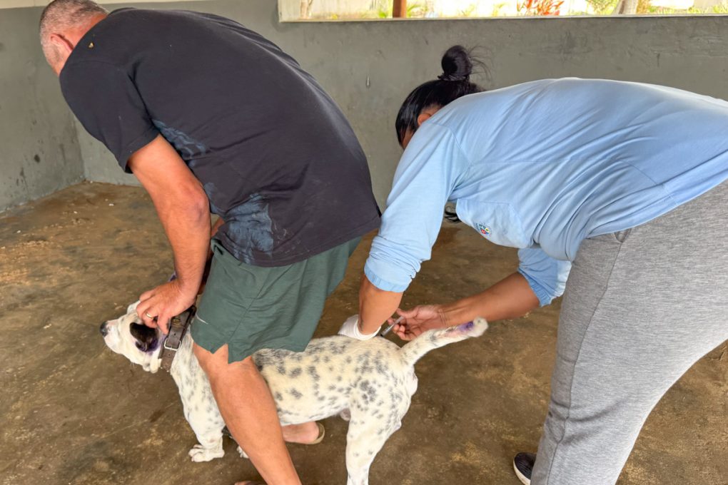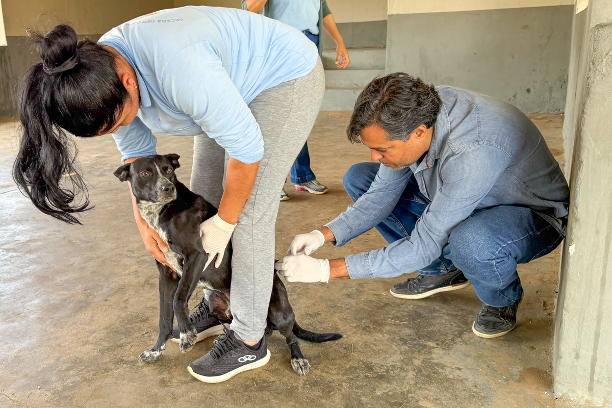 Evanilton Santos também aproveitou a chegada da equipe para garantir a vacina dos seus cães, Romeu, Bela e Princesa. “Todo ano eu vacina meus bichinhos porque é muito importante para a saúde deles e também para a nossa proteção”, comentou Evanilton.