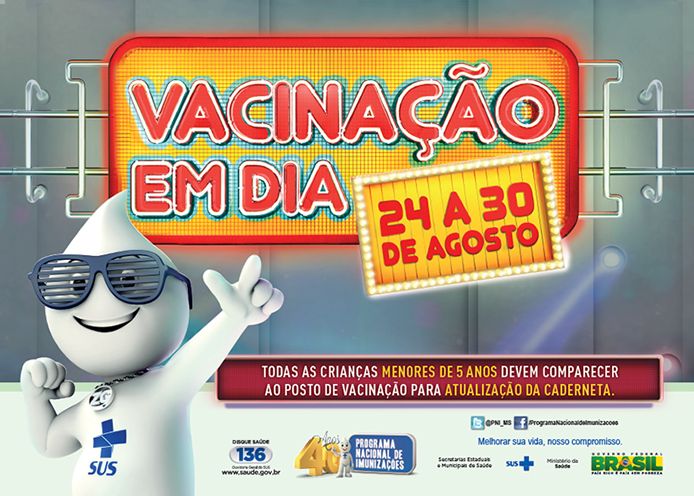 O Dia D da Campanha de Multivacinação será nesse sábado, 24, para todas as crianças menores de 5 anos. Os pais ou responsáveis podem se dirigir às unidades de saúde, das 8h às 17h, com o cartão de vacina em mãos, para que os profissionais de saúde possam avaliar e atualizar a situação vacinal da criança.