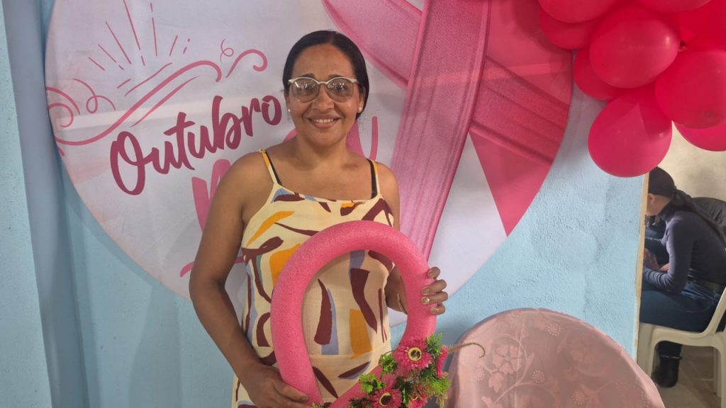 Agente Comunitária de Saúde na região há 23 anos, Bertolina Pereira ressaltou a facilidade de a população não precisar fazer grandes deslocamentos para ter acesso aos diferentes serviços. “Pra mim tá sendo uma maravilha. A gente tem o costume de fazer esse movimento do Outubro Rosa todo ano, só que sempre na sede do Pradoso. E esse ano foi feito aqui na comunidade. É um privilégio para as pessoas que não precisam se deslocar daqui para o Pradoso, pra fazer o exame preventivo e outras ações importantes que estão acontecendo”.