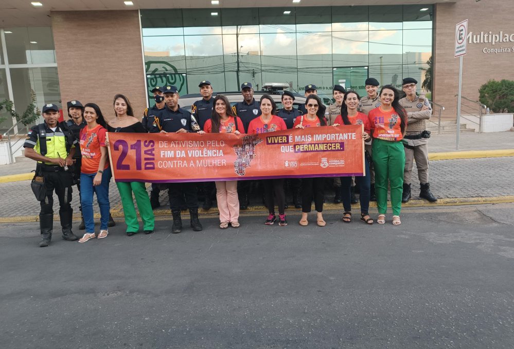 Como parte das ações da campanha 21 Dias de Ativismo pelo Fim da Violência Contra a Mulher, a Secretaria Municipal de Políticas para Mulheres promoveu uma blitz educativa nas avenidas Olívia Flores e Juraci Magalhães para alertar principalmente os homens sobre as formas de abuso.