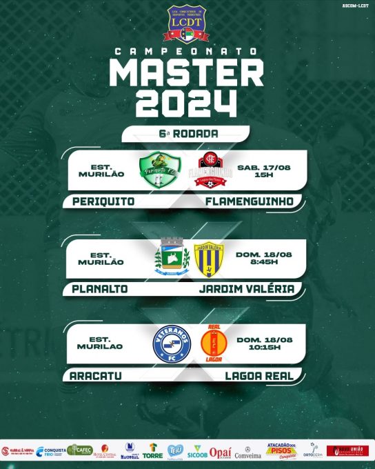 Promovido pela LCDT, o Campeonato Master de Futebol conta com o apoio da Prefeitura de Vitória da Conquista, por meio da Secretaria de Cultura, Turismo, Esporte e Lazer.