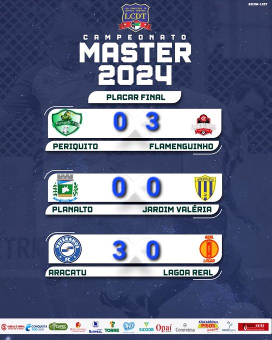 No Campeonato Master, que reúne atletas com mais de 40 anos, três confrontos foram realizados no Estádio Murilão no final de semana. O Flamenguinho venceu o Periquito pelo placar de 3 a 0. Com o resultado, o Flamenguinho terminou a fase com nove pontos.