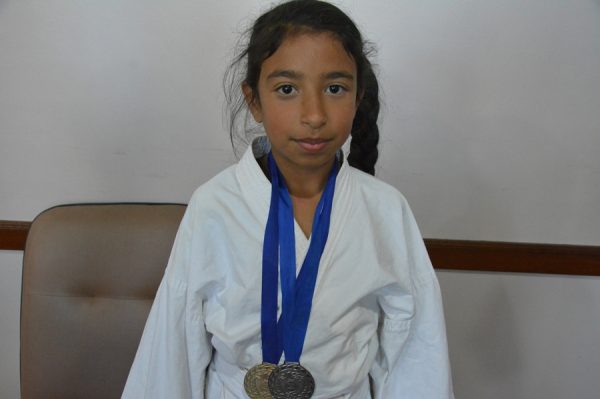 O prefeito parabenizou aos atletas pela conquista e acrescentou: “nós também estamos recebendo essas medalhas e estou muito feliz de estar aqui nesta tarde com vocês”. Jéssica Evelin Rocha (10) era um dos medalhistas presente no Salão Nobre do Gabinete Civil. Participando pela primeira vez de um campeonato, ela trouxe o ouro ao conseguit vencer no Kumitê (luta), além de ganhar a prata no Kata. “Fiquei muito feliz”, resumiu a menina sobre a vitória. Aluna da Escola Municipal Lions Clube, Jéssica explicou, em breves palavras, porque gosta do esporte: “Ele educa, ensina, a gente aprende mais”.