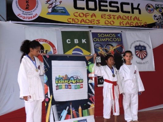 Caratecas que fazem parte do projeto Educarte, ligado à Prefeitura de Vitória da Conquista, por meio da Secretaria Municipal de Educação, participaram neste sábado (18) da Copa Estadual Cidades do Karatê. O torneio, realizado em Itapetinga, reuniu cerca de 100 atletas de diversos municípios baianos.