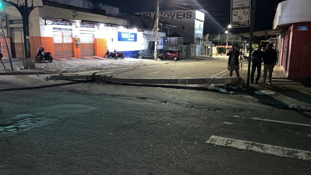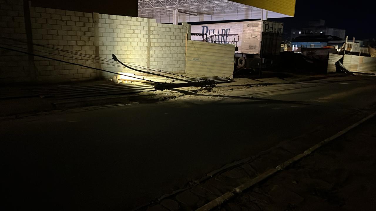 Por volta das 20h desta segunda-feira (11), uma carreta baú atingiu a fiação da rede de telefonia da Avenida Boa Vontade, no trecho entre as avenidas Maranhão e Brumado, derrubou cinco postes da Coelba e danificou o conjunto semafórico.