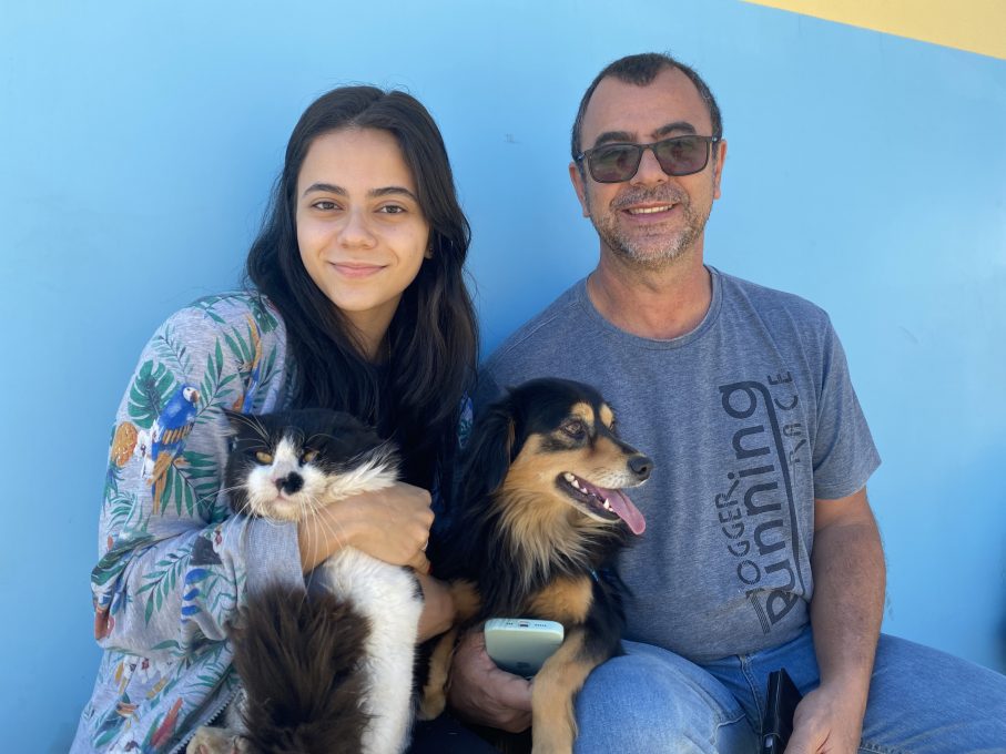 Ana Catharine e o seu pai Luiz Augusto, moradores do bairro Primavera, foram logo cedo garantir o atendimento. Eles levaram o cãozinho Tommy, de 3 anos, e Gatão, de 1 ano.