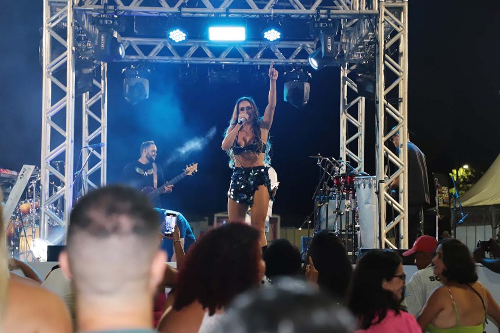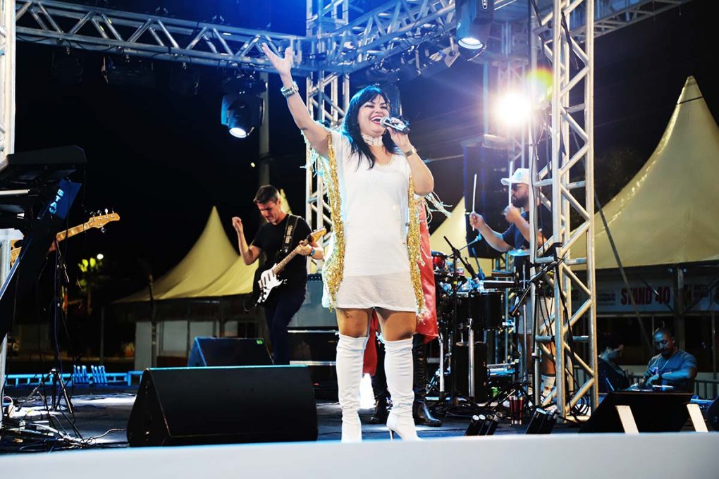 Dona de uma voz que se tornou conhecida nacionalmente nos anos 1990, em meio à onda do Axé Music, a conquistense Cátia Guimma trouxe um repertório baseado em clássicos do gênero em que se destacou, inicialmente como vocalista da banda do bloco Futuca, em Salvador, e depois em carreira solo. “Sempre faço este tipo de show. Faço outras coisas, também. Mas, como minha carreira nasceu em cima de um trio elétrico, meu forte é o axé. Eu sempre faço um revival. Gosto sempre de relembrar aqueles carnavais dos anos 1990, que, para mim, foram os melhores”, contou a cantora.