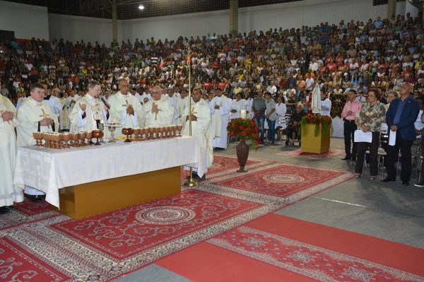 Em plena Semana Santa, católicos de mais de 30 cidades da região se reuniram em Vitória da Conquista para celebrar os santos óleos, na chamada Missa da Unidade. A celebração aconteceu no início da noite desta terça, 11 de abril, no Ginásio de Esportes Raul Ferraz, e foi presidida pelo Arcebispo Dom Luiz Gonzaga Pepeu.