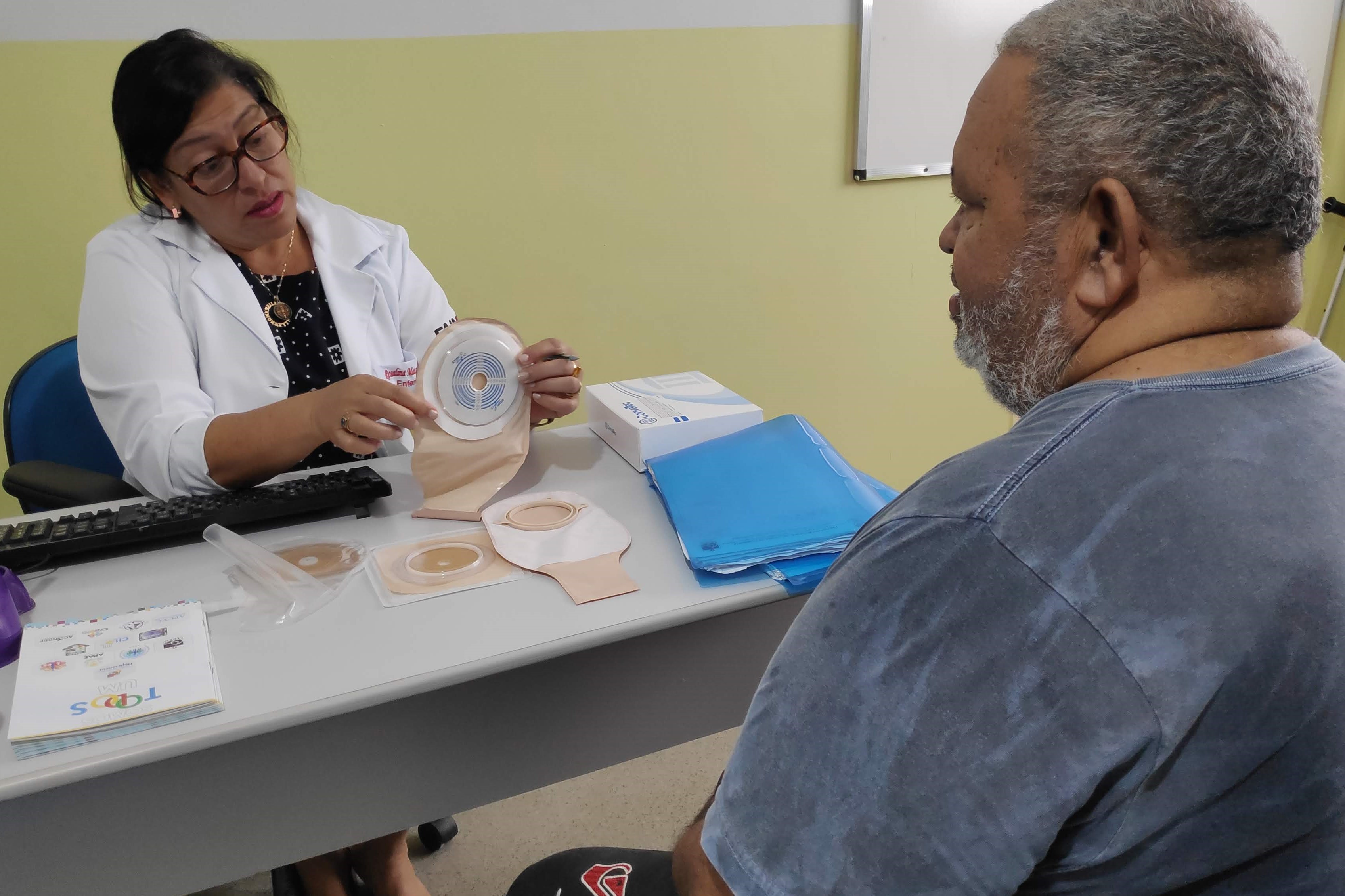Os pacientes são encaminhados ao Cemerf pelos hospitais, postos de saúde ou por demanda espontânea e recebem, mensalmente, os suprimentos de materiais, além de acompanhamento multidisciplinar. “Após o cadastro, ele também vai ser orientado quanto aos cuidados com o uso da bolsa, o período de troca e higiene. O paciente já leva a quantidade necessária para um mês e já fica marcado o retorno para o mês seguinte”, explica a enfermeira gerente do serviço de ostomia do Cemerf, Rosalina Macedo.