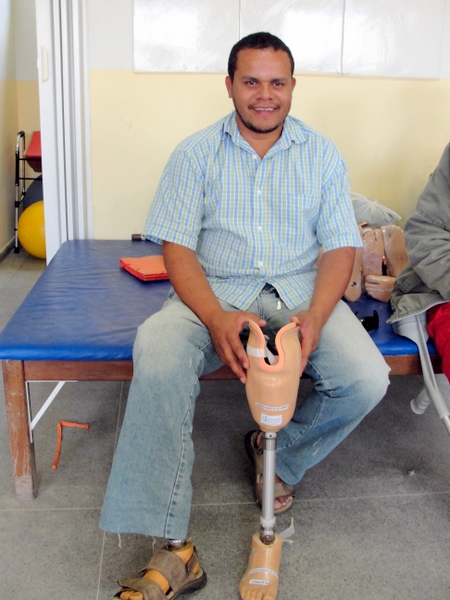 Um acidente de moto e um tratamento incompleto deixaram Alessandro Pereira de Sousa com osteomielite (inflamação nos ossos), o que levou a amputação de parte do membro inferior esquerdo, mas após pouco mais de dois meses de entrada no serviço já está fazendo a prova de sua prótese. Durante a prova, Alessandro não pôde esconder a sua ansiedade para deixar a muleta de lado. “Espero voltar a trabalhar depois desta prótese”, expressou.