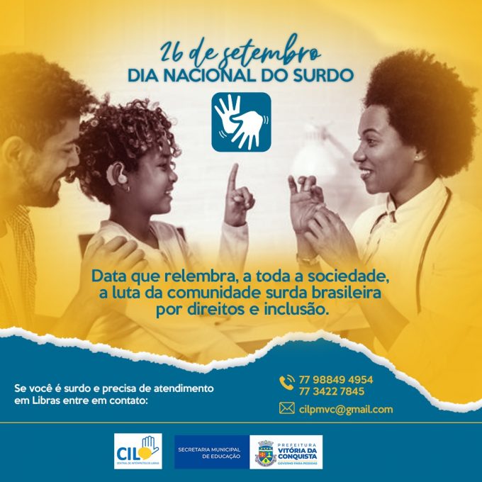 A comunidade surda celebra nesta segunda-feira (26), o Dia Nacional do Surdo. Marcada pela luta por direitos e inclusão, principalmente a questão da acessibilidade, a data é dedicada à conscientização da sociedade sobre diversas situações enfrentadas por esse público. Em Vitória da Conquista, a Prefeitura, por meio da Secretaria Municipal de Educação e da Central de Libras (CIL), atende 170 surdos.