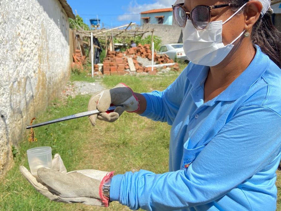 Uma equipe de agentes responsável pelo combate ao escorpionismo no município faz o trabalho de inspeção e de captura desses animais, por meio das denúncias registradas junto ao Centro de Controle de Endemias. “O cidadão entra em contato relatando o aparecimento de escorpião em alguma residência ou terreno vizinho próximo, e a equipe faz a inspeção do local para identificar focos e captura dos animais. Além disso, a equipe orienta os moradores sobre os cuidados que devem ser mantidos no quintal, que deve estar sempre limpos e sem entulhos”, esclarece a coordenadora do CCE, Gabriela Andrade.