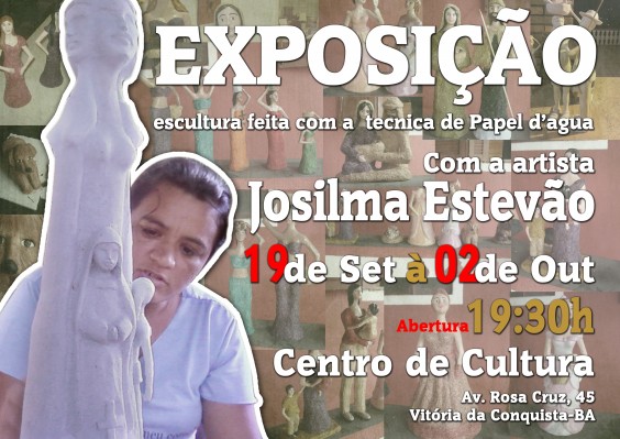Entre os dias 19 de setembro e 02 de outubro ficará aberta no Centro de Cultura Camilo de Jesus Lima uma exposição de esculturas feitas com a técnica papel d’água. A responsável pelos trabalhos é a artista pernambucana Josilma Estevão.