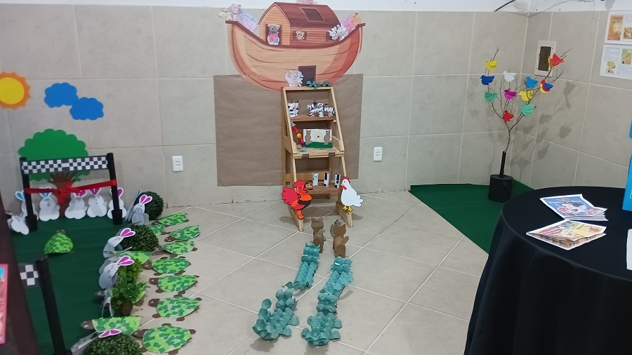 A Creche Conveniada Bela Vista realizou nesta segunda-feira (21), a V Mostra Vivências Significativas, que, este ano, teve como tema “Literatura Infantil: uma janela para o mundo”. O material produzido pelos alunos ficou exposto para ser apreciado por toda a comunidade escolar. A história bíblica da Arca de Noé e histórias infantis que atravessam gerações como “Chapeuzinho Vermelho”, “Os três porquinhos”, “Branca de Neve”, “Cinderela”, “João e Maria”, “João e o Pé de feijão”, além de homenagem ao cartunista Ziraldo, fizeram parte da mostra.