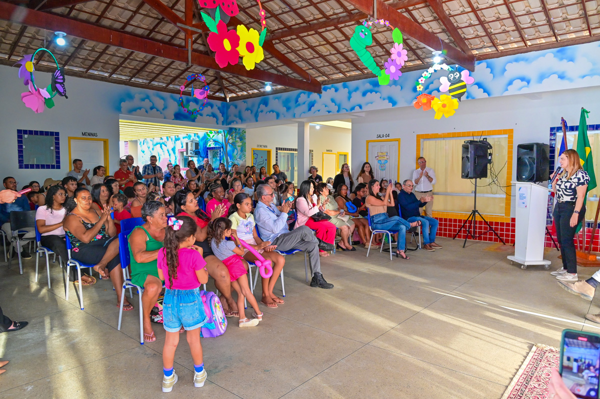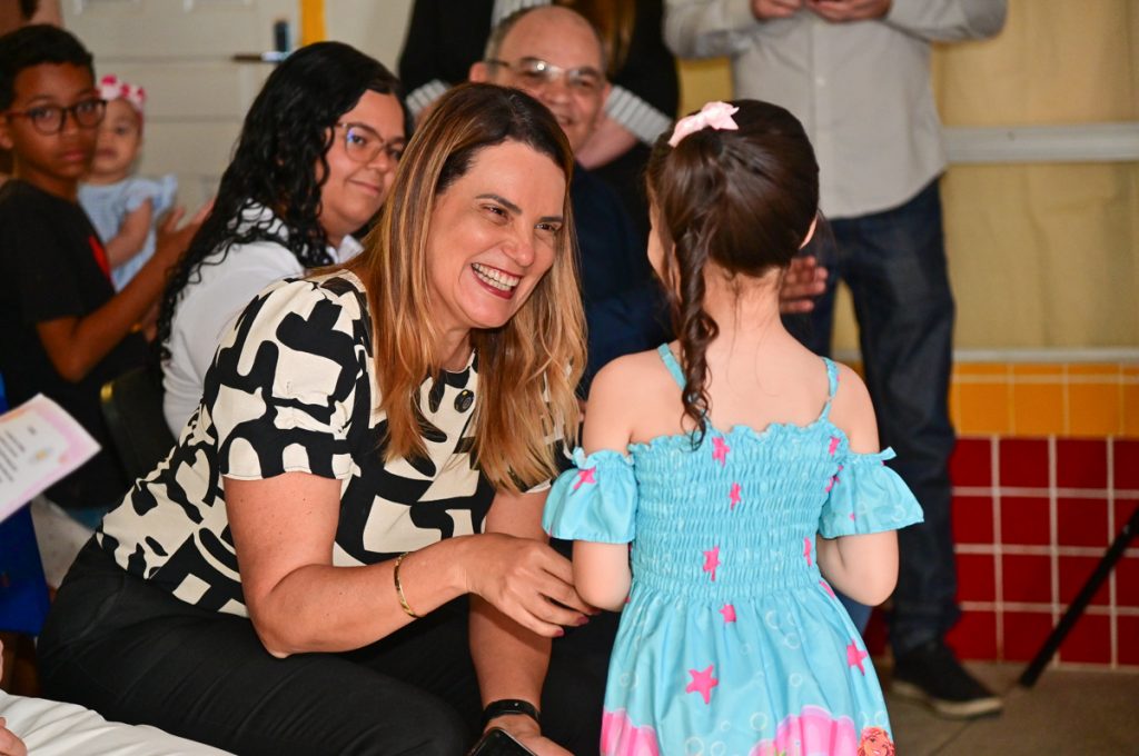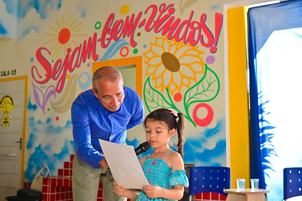 Representando as mães e pais dos alunos, Luana Neres também expressou a felicidade em ver o espaço requalificado. Mãe da estudante Thaylla, ela valoriza os esforços da Smed e da equipe do Cmei para criar um ambiente acolhedor para as crianças. “Desde o início que meus meninos estudam aqui, eu sei que aqui é a segunda casa deles. Eu os entrego para as professoras monitoras, com muita confiança. Elas ensinam com amor. As crianças são apaixonadas por elas. Eu tinha dois filhos estudando aqui e agora eu só tenho uma, e o coração já está apertado porque é o último ano dela. Mas é gratificante conviver aqui”.