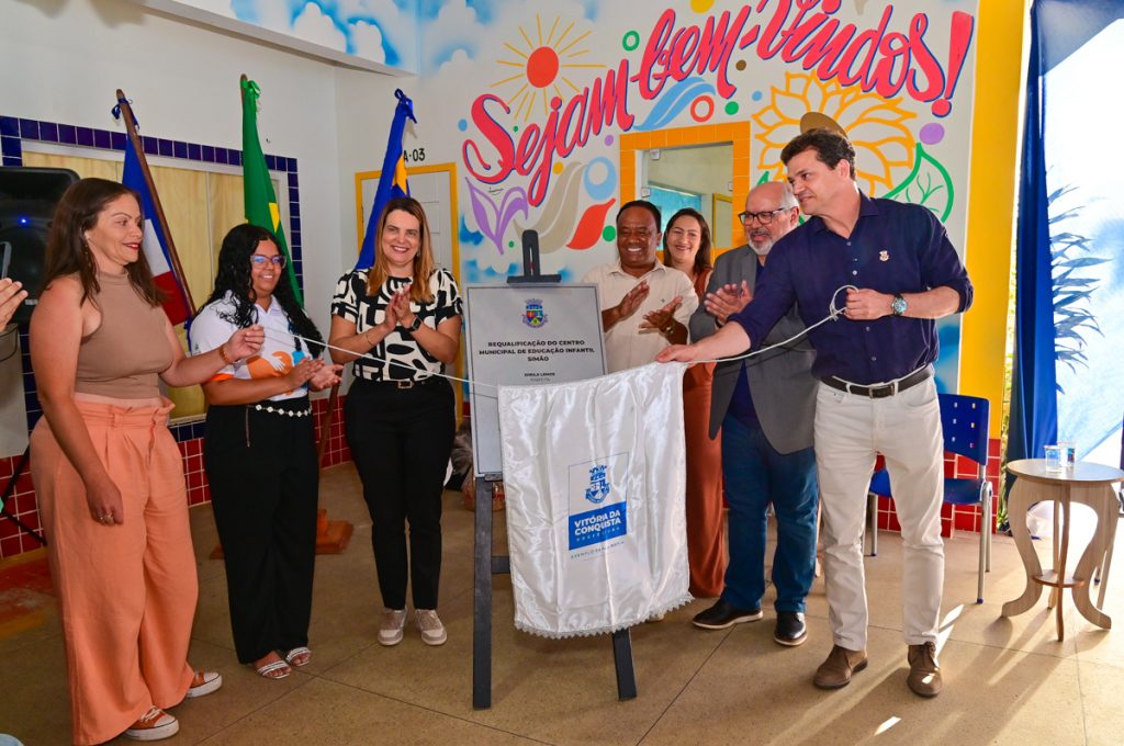 A tarde desta quarta-feira foi especial para a comunidade do bairro Simão, com a entrega do Centro Municipal de Educação Infantil (Cmei) totalmente revitalizado pelo Governo Municipal. Com mais essa entrega já são 95 escolas  revitalizadas pela Prefeitura de Vitória da Conquista, por meio da Secretaria Municipal de Educação (Smed), desde 2021.