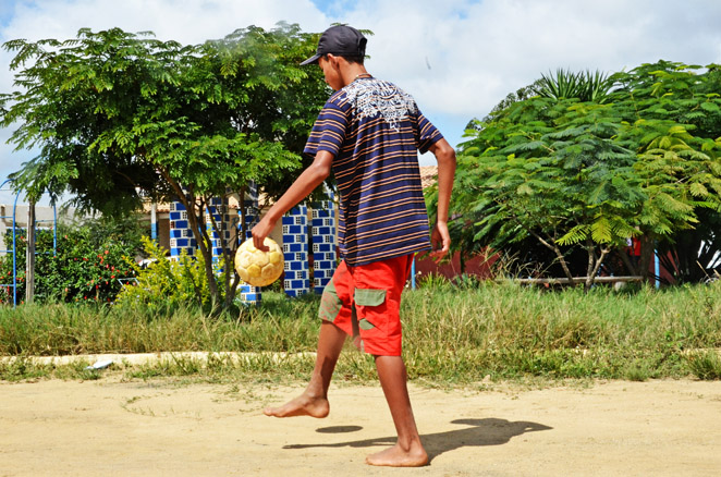 Aos 17 anos, acolhido pelo Centro Pop há pouco mais de dois anos, G. tem hábitos simples. Acorda cedo, toma café e vai jogar bola com outros adolescentes num campinho situado dentro dos limites da sede do serviço. Após almoçar, segue para o programa Conquista Criança, onde participa de atividades físicas, esportivas e culturais. O turno da noite é reservado aos estudos no 7º ano do Ensino Fundamental da Escola Municipal Edivanda Maria Teixeira, onde está matriculado desde que se tornou um educando do Centro Pop.