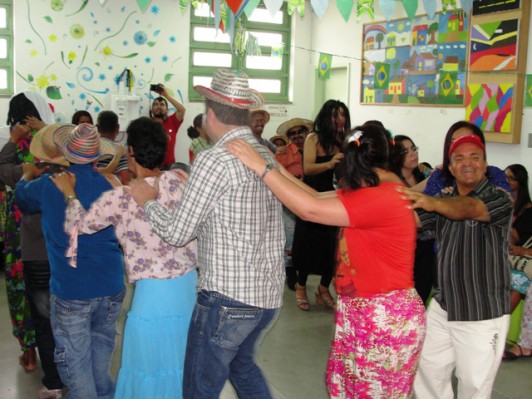 No Caps II, o festejo foi animado com a realização de uma quadrilha junina na última quarta-feira, 18. Com muita irreverência e animação, os participantes da Oficina de Teatro se apresentaram no próprio serviço. A marcadora da quadrilha foi a coordenadora da oficina, Jussara Maria Silveira. Durante o evento, ela lembrou sobre a importância da apresentação para o grupo. “A escolha do tema e das roupas são feitas pelos integrantes do próprio grupo de teatro, que atualmente conta com 15 pessoas. Este é um momento de valorização e integração”, avaliou Jussara.