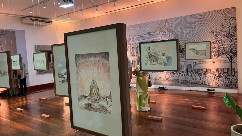 Após o descerramento da placa do tombamento, os participantes se dirigiram ao recém-reinaugurado Memorial Maneca Santos da Câmara Municipal, que recebeu a exposição “Histórias, memórias, lugares”, do renomado artista plástico conquistense Silvio Jessé. Foram expostas 52 obras feitas com bico-de-pena, retratando a história e a arquitetura de Vitória da Conquista. “O convite foi uma honra, e me sinto emocionado. Sempre tive vontade de trabalhar com uma técnica diferente, a bico-de-pena. Pintar Conquista, pra mim, é um presente que dou para cidade que amo tanto. Nasci aqui e as memórias daqui são, para mim, importantíssimas. A memória tem que estar sempre viva e forte na cabeça da gente, é um processo de empoderamento, humanização”.
