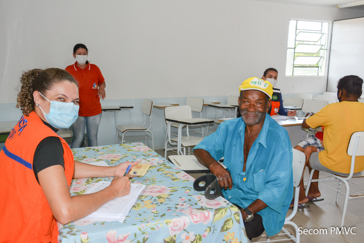 À tarde, seu Idalício e outros pais e mães de família estavam na escola para receber o kit entregue da equipe formada por guardas municipais, técnicos da Defesa Civil e uma assistente social da Semdes. “Vai ser uma ajuda boa. Um quilo que eu receber, fico agradecido. O que Deus manda é bem-vindo”, comentou ele.