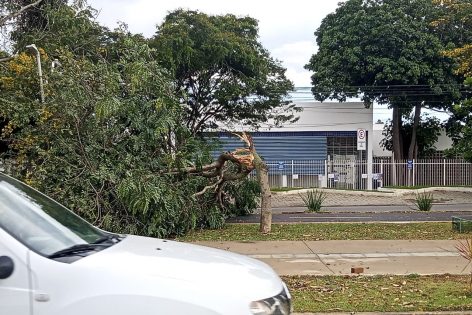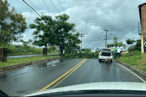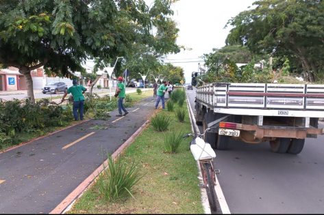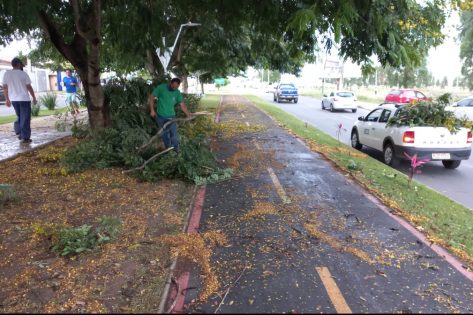 No bairro Boa Vista, uma equipe da Secretaria de Meio Ambiente (Semma) fez a poda e recolheu parte de uma árvore que tombou, fechando a pista.