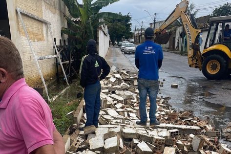 No Deserg, onde um muro também caiu, a equipe da Secretaria de Infraestrutura Urbana já trabalha para limpar a área.