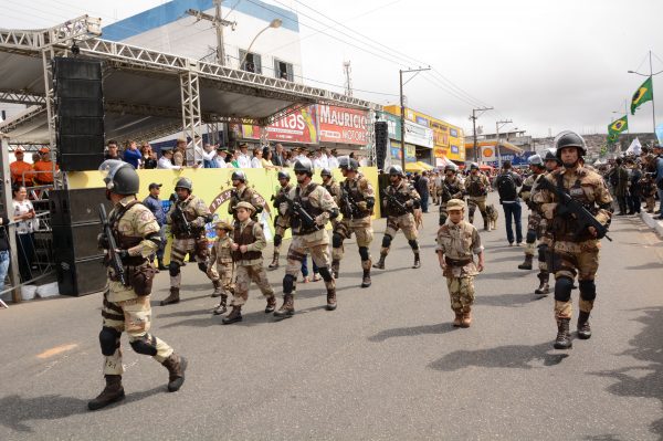 Parada cívica– O desfile foi iniciado pela ala militar composta pelos ex-combatentes do Exército Brasileiro, pelo Tiro de Guerra, pelo Colégio da Polícia Militar (PM), pelo Núcleo de Veteranos, pelos oficiais do 9° Batalhão, das Companhias da Polícia Militar, das Companhias Independentes da PM e do Grupamento de Bombeiros. O cortejo dos militares impressionou o público pela sincronia dos passos, organização e disciplina.