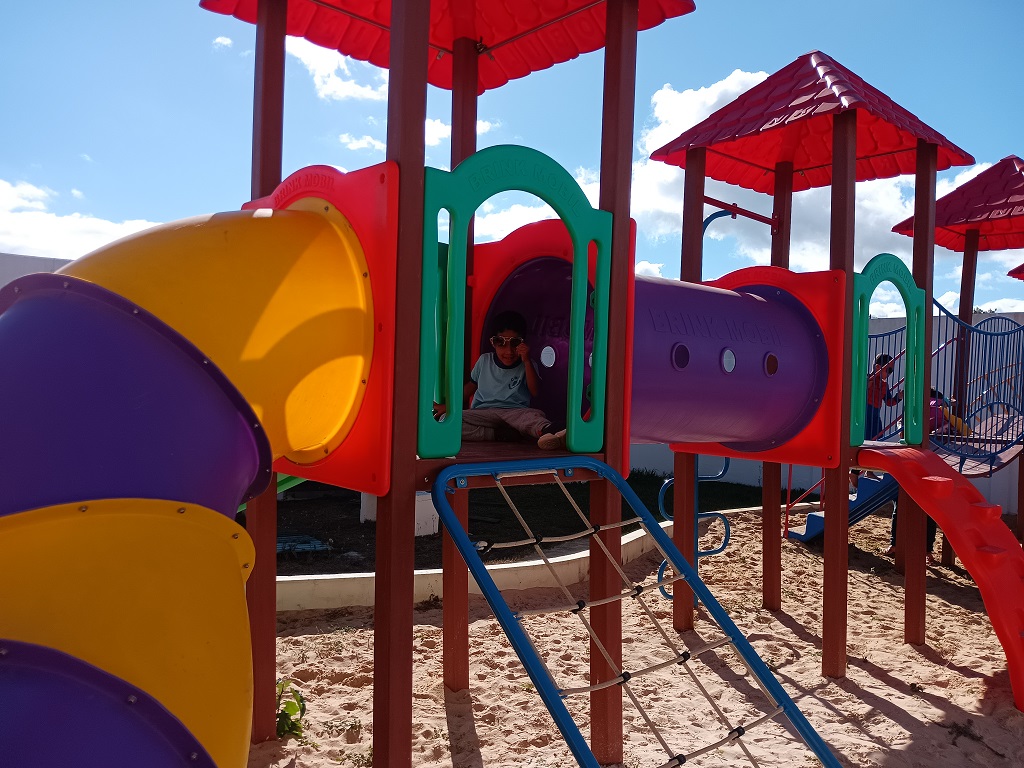 - Aproveitando os brinquedos da instituição