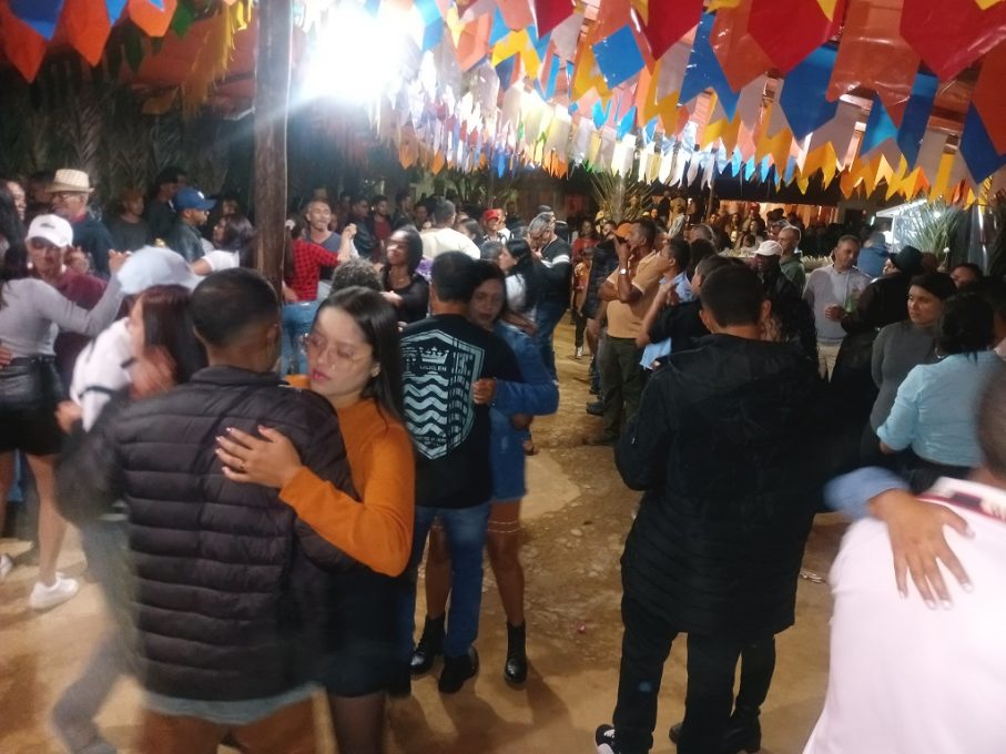 Dantelândia – a animação começou por volta das 22h, com a banda Clima do Forró, formada por quatro músicos e apoiada pela PMVC. Para Alexandre Dutra e Giseli Alves, organizadores do evento, o apoio da Prefeitura para a apresentação das bandas Axel Libarino e Clima do Forró foi fundamental. “É importante para os distritos. São João é tradicional em Dantelândia e agradecemos o apoio da gestão municipal”.