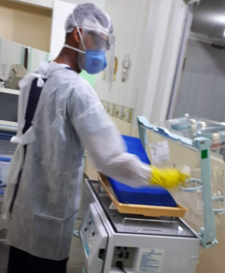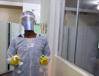 “As recepções, por exemplo, onde há mais movimento, são limpas quatro vezes por dia, e a limpeza das cadeiras e bancadas é feita com álcool a 70%, de duas em duas horas. Quanto às rotinas de limpeza, intensificamos bastante. E nos casos de isolamentos para a Covid-19 estamos fazendo um trabalho mais específico, limpeza com sabão, hipoclorito de sódio 1% e quaternário de amônio de última geração. Quando tem pacientes nesses isolamentos, que saem de alta ou transferência, o funcionário da higiene aguarda de 2 a 3 horas depois que o paciente sai para fazer a desinfecção”, explica.