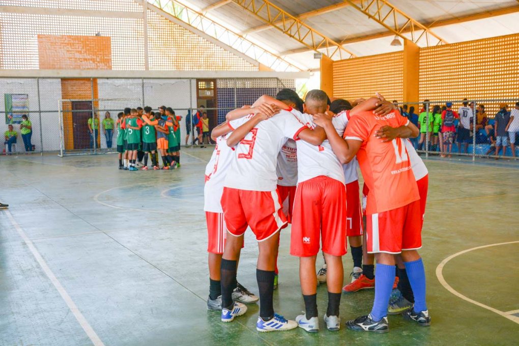 O futsal masculino encerrou as disputas do Polo 1 e foi digno das grandes finais. Jogo equilibrado do início ao fim teve reviravoltas. No primeiro tempo em que só a equipe da Cláudio atacava, a defesa do Cei de Cabeceira deu um belo chute ainda no campo de defesa e abriu o placar. Já no início do segundo tempo, o camisa 10 da Cláudio foi expulso após receber o segundo cartão amarelo e o time com só três jogadores em quadra empatou com o camisa 9, Davi de Sousa, de 14 anos, que poucos minutos depois fez o gol da vitória. “Para mim é um prazer fazer dois gols na vitória. Agora é só alegria”, disse Davi ao sair da quadra comemorando com sua torcida.