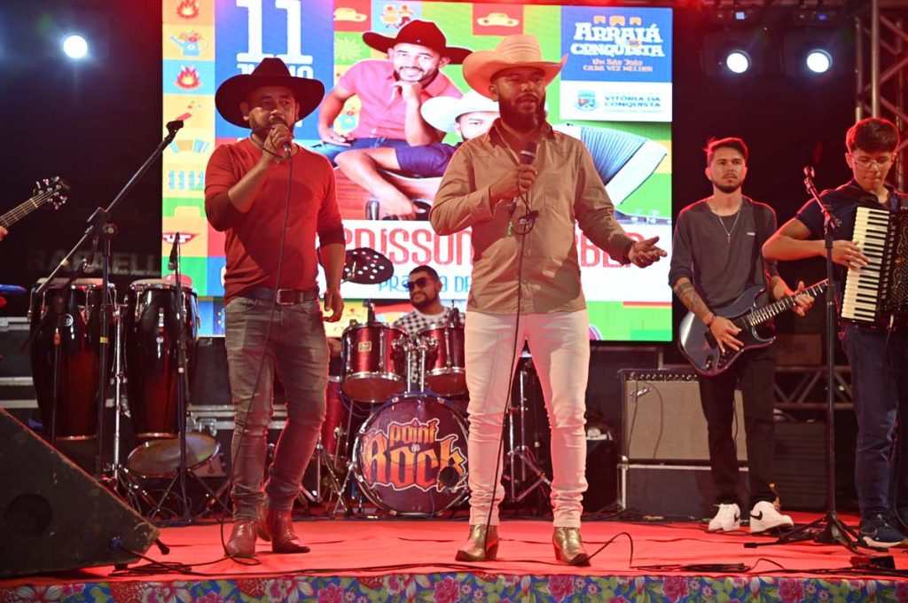 A dupla sertaneja Klérisson e Kléber, cujos integrantes são da região da Limeira, na Zona Rural de Vitória da Conquista, apresentou-se pela primeira vez no palco da Nove de Novembro. E, para compor a grade musical do Arraiá da Conquista, eles criaram um repertório específico de forró – ou seja, diferente dos “modões raiz” que marcam suas apresentações nos outros meses do ano, ao estilo de artistas como Tião Carreiro, Trio Parada Dura e a dupla Milionário e José Rico.