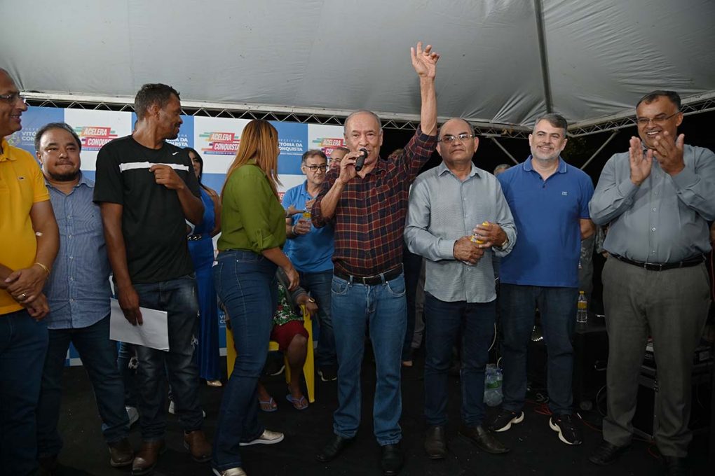 “Com fé em Deus, agora vai!”, comemorou, na noite desta quinta-feira (11), a aposentada Anelita Matos dos Santos, 78 anos, durante a cerimônia de assinatura da Ordem de Serviço que autorizou o início das obras de macrodrenagem, pavimentação e sinalização em 21 ruas do Cidade Modelo. Os trabalhos estão previstos para começar já nesta sexta-feira (12), conforme o anúncio oficial.