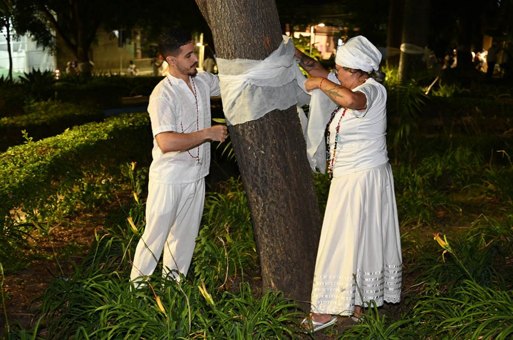 Ao longo da noite comunidades de diversos terreiros se reuniram para cantar e celebrar a sua religião, sem medo de preconceitos ou julgamentos. Mãe Ana, da Casa de Caridade Nhá Chica – Terreiro de Umbanda, participou da celebração e destacou a importância desses momentos de união. “Fazer parte desse momento está sendo maravilhoso. Os ojás nos ajudam a contemplar os orixás, a natureza e, principalmente, a paz e harmonia. Esse é um grande passo para combater a intolerância religiosa e eu acho que vai ressoar em outros espaços. A gente precisa combater e implantar o nosso axé sobrevivendo a tantas opressões”, relatou.
