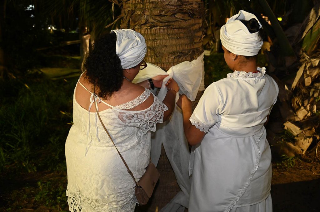 Ao longo da noite comunidades de diversos terreiros se reuniram para cantar e celebrar a sua religião, sem medo de preconceitos ou julgamentos. Mãe Ana, da Casa de Caridade Nhá Chica – Terreiro de Umbanda, participou da celebração e destacou a importância desses momentos de união. “Fazer parte desse momento está sendo maravilhoso. Os ojás nos ajudam a contemplar os orixás, a natureza e, principalmente, a paz e harmonia. Esse é um grande passo para combater a intolerância religiosa e eu acho que vai ressoar em outros espaços. A gente precisa combater e implantar o nosso axé sobrevivendo a tantas opressões”, relatou.