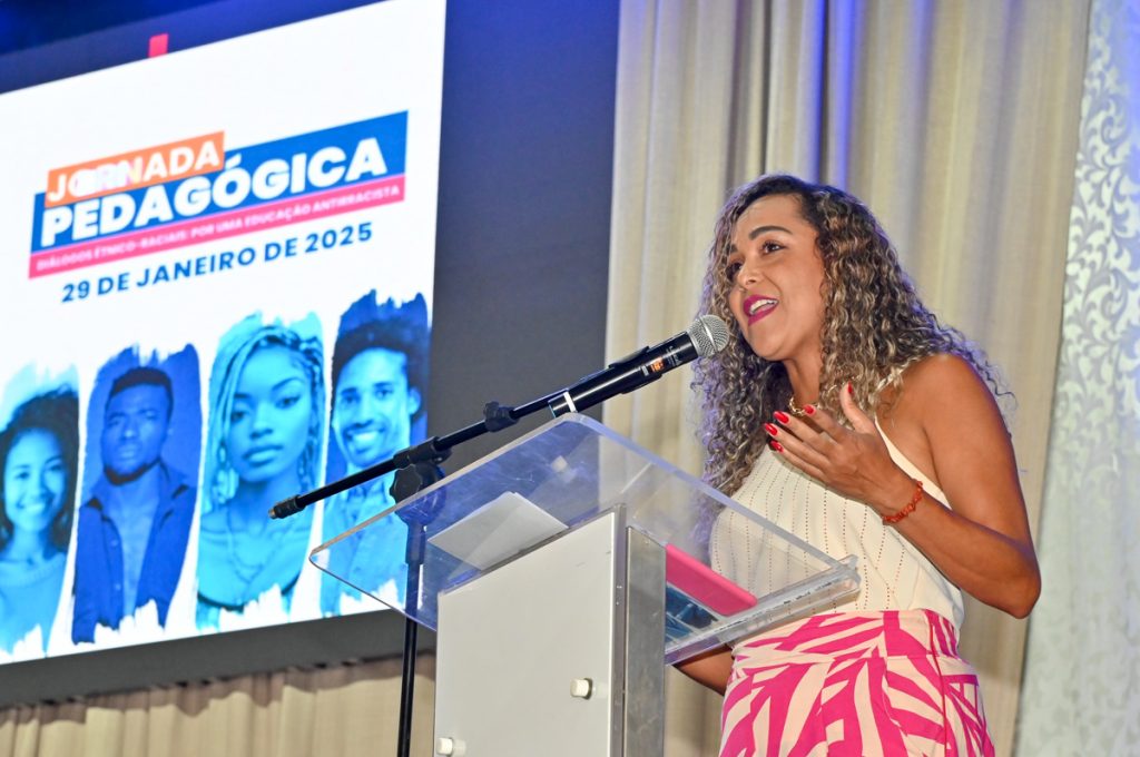 No discurso de abertura, a prefeita Sheila Lemos destacou a importância dos profissionais da Rede Municipal. “Vocês são a força que impulsiona a transformação educacional em Vitória da Conquista. A educação é um esforço coletivo e contínuo”, disse. Segundo ela, o tema da Jornada Pedagógica é uma reafirmação da missão de construir uma escola que respeite, valorize e promova a diversidade em todas as suas formas. “Essa missão é compartilhada por todos nós – Governo Municipal, professores, pais, e toda a comunidade educacional. Cuidar e transformar a vida das nossas crianças é a nossa obrigação conjunta. Só alcançaremos uma verdadeira evolução se caminharmos lado a lado, com olhares atentos e corações abertos”, salientou a gestora.