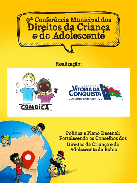 Acontece nos dias 15 e 16 de abril, quarta e quinta-feira, a Conferência Municipal dos Direitos da Criança e do Adolescente, promovida pelo Conselho Municipal dos Direitos da Criança e do Adolescente (Comdica) e a Prefeitura de Vitória da Conquista, por meio da Secretaria Municipal de Desenvolvimento Social. O evento será realizado em dois espaços: no auditório e no Polo de Educação Permanente do Centro Municipal de Atendimento Especializado (Cemae).