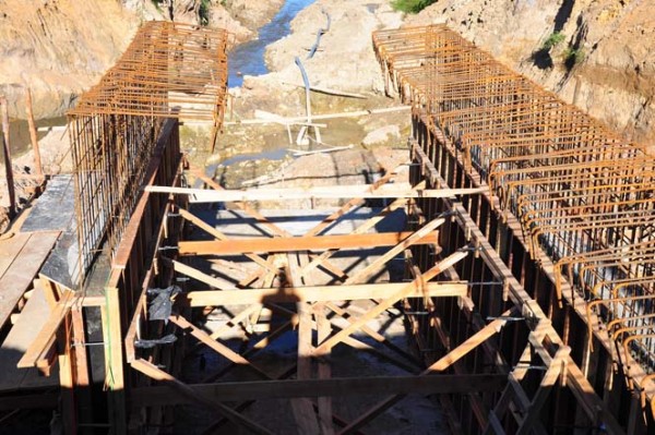 O passo seguinte será a armação da ferragem e a concretagem da laje. Quando concluída a construção, o desvio do rio será desfeito e a terra retirada será recolocada na margem.