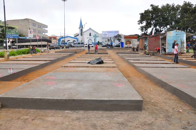 Os serviços de alvenaria, que servirão como base para os 229 boxes dos vendedores, já estão sendo concluídos e as vagas serão espalhadas no entorno da praça com a Rua da Misericórdia e na área entre a Hercílio Lima e a Rua São Pedro, reservada atualmente a estacionamentos.