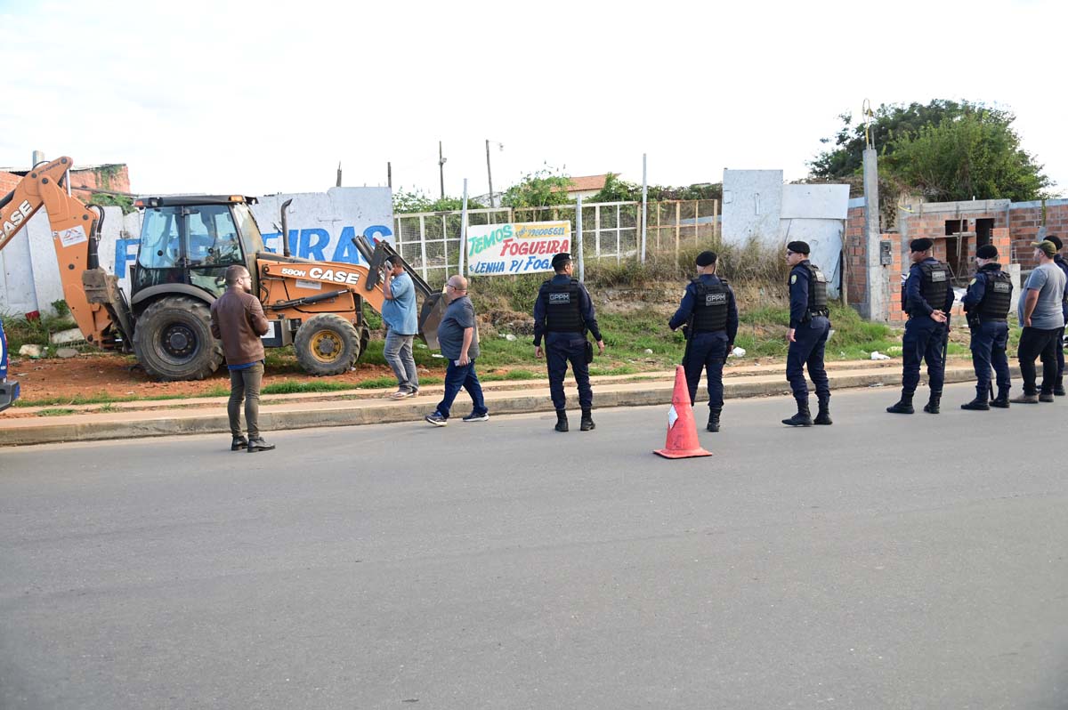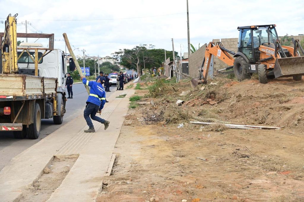 A abordagem realizada hoje diz respeito à remoção de objetos que cercavam os terrenos ocupados de forma irregular, como tapumes, toras de madeiras, arames, entre outros. O material foi recolhido e encaminhado para a Central de Equipamentos (Deserg), de onde poderá ser retirado pelos proprietários. Não houve qualquer tipo de intervenção nas edificações que existem no local.
