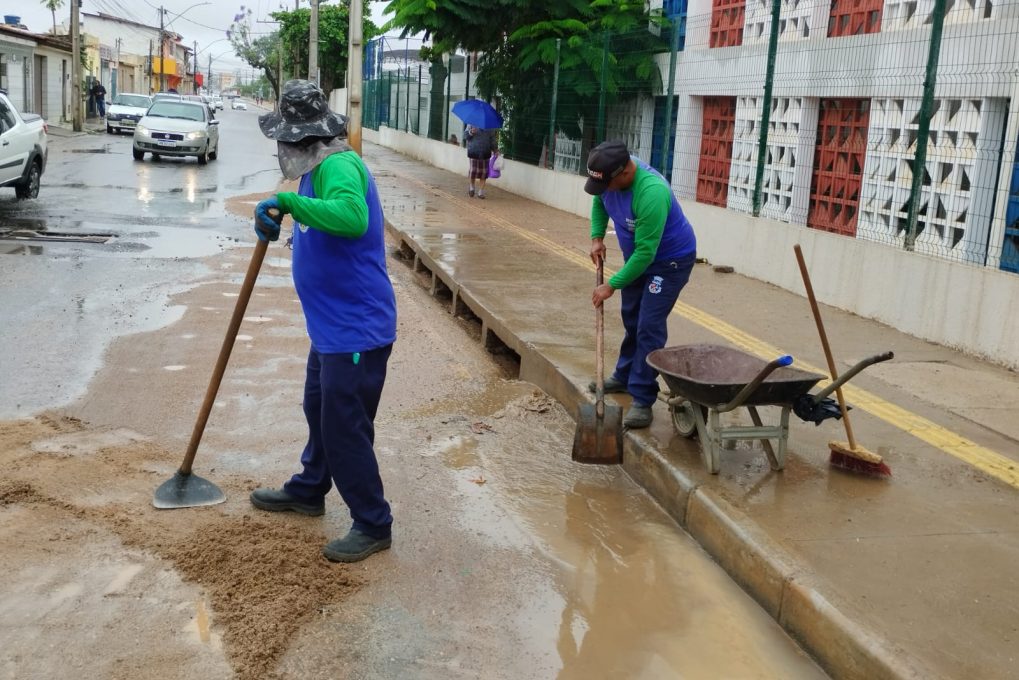 Já a equipe da Secretaria Municipal de Infraestrutura Urbana (Seinfra), juntamente com técnicos da Empresa Municipal de Urbanização (Emurc), realiza a vistoria no trecho em obras da Avenida Francisco Sabino, no loteamento Vila América e reavalia a extensão do afundamento de terra ocorrida no local. Ainda não há possibilidade de recomposição da base, porque as chuvas estão em andamento. Atualmente, a obra, que está em fase de substituição das manilhas de concreto por tubos PHD, recomposição da base e reconstrução do canteiro central, está isolada com equipamentos do Simtrans.